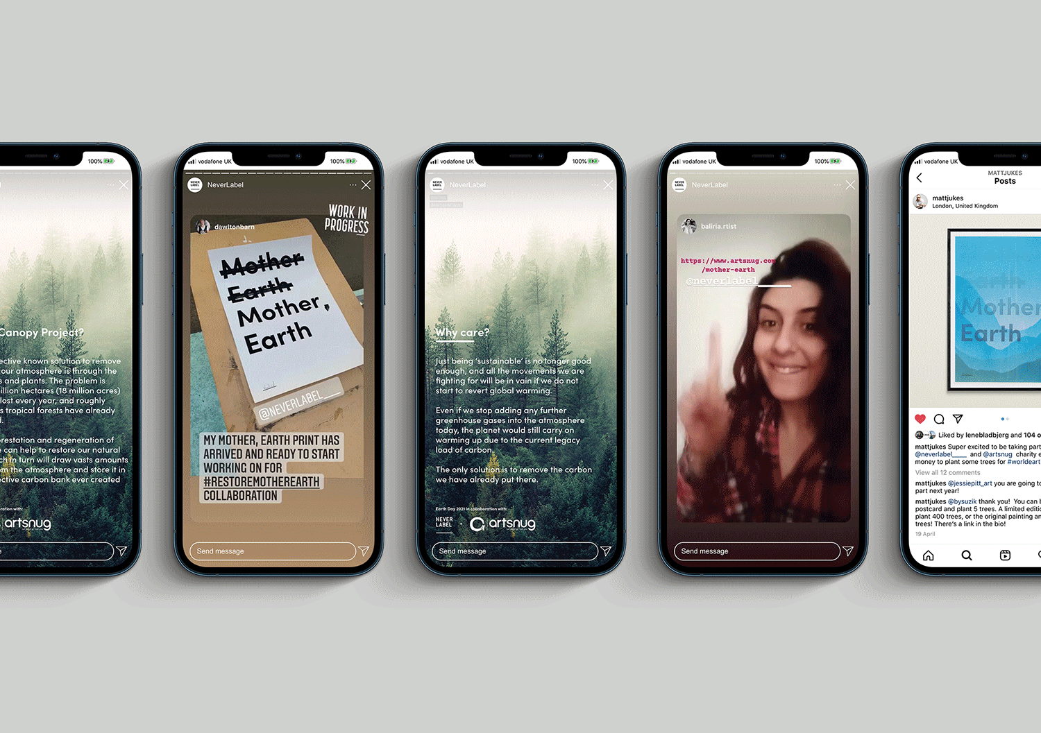 To jumpstart the conversation on climate change during lockdown, we (NeverLabel) created the world's first carbon-negative art screenprint for Instagram—'Mother, Earth.’